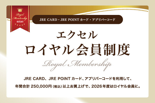 2026年4月1日からスタートする、JRE POINT会員(JRE CARD、JRE POINTカード、アプリバーコード)を対象とした、エクセル・エクセルみなみをご利用いただいているお客さまが特典を受けられるエクセル独自の制度です。