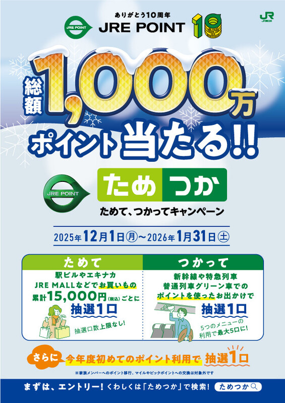 「総額1000万ポイントが当たる!ためて、つかってキャンペーン」を実施いたします。