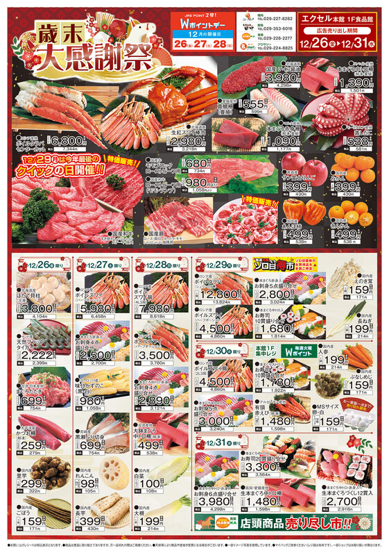 12月の折込チラシ「歳末大感謝祭」の内容をお知らせいたします🐎