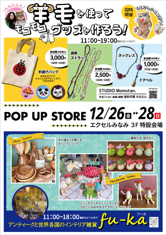 「モモコの部屋 」・「fu-ka」を開催いたします!