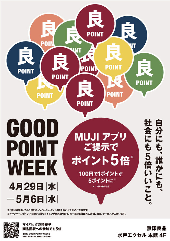 本館4F「無印良品」にて「GOOD POINT WEEK」を開催⭐