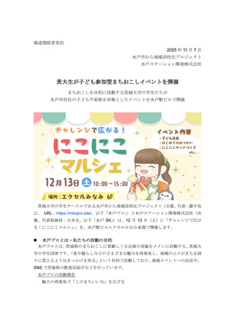 『チャレンジで広がる!にこにこマルシェ』をプレスリリースしました。