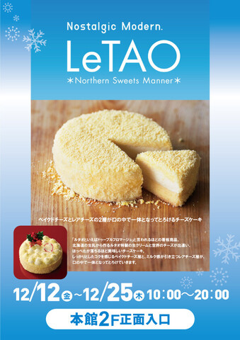 本館2F正面入口にて、「LeTAO」が期間限定出店いたします⛄