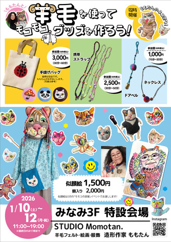 モモコの部屋 「ももたんと羊毛を使ってモコモコグッズを作ろう!」を開催いたします。