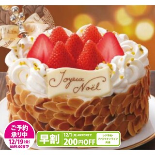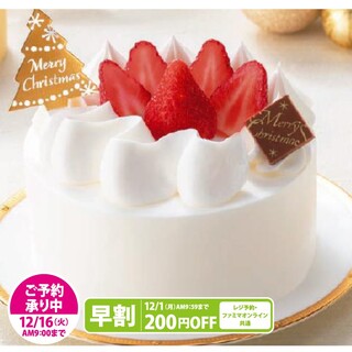 【ご予約承り期間:12/16(火)まで】 ★早割:12/1(月)AM9:59まで200円OFF(レジ予約・ファミマオンライン共通)★ くちどけがなめらかな北海道産生クリーム入りホイップクリームと、くちどけの良いスポンジが相性抜群のショートケーキです。