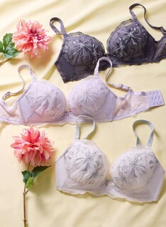 着けた瞬間、ふっくらバスト。きれいを叶える「育乳ブラ」✨ 【デザイン】 ドラマティックな花刺繍が印象的な1枚。 纏う度に気持ちまで凛と整うような、上品なカラーでご用意しました♪ 【こんな方におすすめ】 ・デコルテにボリュームが欲しい ・カップの上部分にすき間ができ、パカパカしやすい ・バストに自信がない ・脇のはみ肉が気になる ・脇にお胸が流れやすい ・ワイヤー入りのブラが苦手 ・ブラのズレが気になる ・産後・授乳後の方 【仕様】 ・通常のブラよりもパッドの位置が高いので、お胸全体がぐっと持ち上がり、デコルテにボリュームが出せます。 ・脇からバストをしっかり集めるワイヤーと脇高設計で、脇まわりをすっきりと見せてくれます。 ・ワイヤーは直接お肌に当たらない仕様で痛くなりにくく、ラクな着け心地。 ・ホックは3段設計、バックは背中に沿いやすいU字型の仕様になっているので安定感があり、ブラがズレにくい。 ※当社の「育乳」とは着用時に、お腹や脇・背中に流れたお肉を本来の位置に戻す、補正効果のことを指します。 ご試着も承っております! ぜひご来店お待ちしております☆