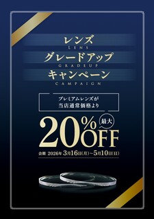 日頃のご愛顧 誠にありがとうございます。 この度 和真では2026年3月16日(月)~5月10日(日)まで「レンズグレードアップキャンペーン」を開催いたします。 ※プレミアムレンズは、和真が取扱うレンズの中で、歪みを抑える設計や高精度の度数補正など特定の機能を備えたレンズを指します。 ※単焦点・遠近両用のいずれにも、この機能を持つレンズをご用意しています。
