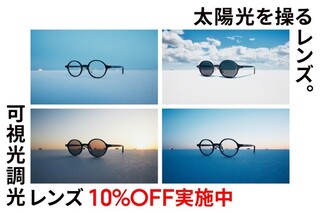可視光線と紫外線を感知、濃度が自然に変化する「可視光調光レンズ」が10%OFF