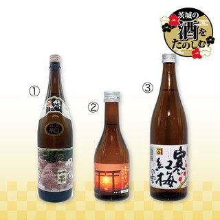 <水戸の梅まつり:2/11(水・祝)~3/22(日)> ①一品辛口梅ラベル 720ml ②本醸造辛口大洗神磯の日の出 300ml ③寒紅梅の雫(純米酒)720ml ※20歳未満の方の飲酒は法律で禁じられています。