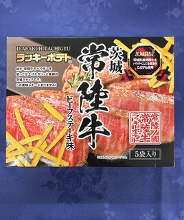 【茨城限定ご当地ポテト】 茨城のブランド牛、常陸牛(ひたちぎゅう) のパウダーを使用したスティックタイプのポテトと栗の名産地笠間栗のペーストを使用したポテトチップスが新発売です。 常陸牛はステーキの味わい、笠間栗はフワッと感じる栗の香りと甘じょっばさが後を引きます。 小分けになってばら撒き土産にもぴったりです。 ◯茨城常陸牛ビーフステーキ味 5袋入 750円 ◯茨城笠間栗ポテトチップス 7袋入 950円 価格は税込です。
