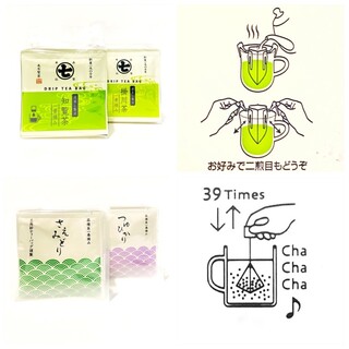 美味しいお茶を「少量」楽しみたい、というお声にお応えする商品です。 【ドリップティーバッグ】 各972円 10袋(一煎パック) *知覧茶 深蒸し製法 一番摘み *掛川茶 深蒸し製法 一番摘み 本格的に、急須無しで楽しめるドリップ式 お好みでニ煎目も、ぜひ 【三角紗ティーバッグ】 各1,026円 10袋(一煎パック) *さえみどり 品種茶 一番摘み *つゆひかり 品種茶 一番摘み 人気の高い品種茶を三角ティーバッグに作りました。手軽にどこでも、お楽しみください。