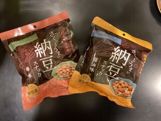 納豆せんべいの代打として、納豆をそのままお菓子にした納豆スナック(梅味・醤油味)が新発売です! 納豆の風味をよく感じられる、お菓子にもおつまみにもなるスナックです!