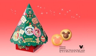 ツリー形ボックスに、サンタクロースに扮した「ミッキーマウス」や「ミニーマウス」たちをデザイン🎄✨ 中にはミッキーアイコン柄クッキーを詰め合わせました♪