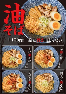 人気のガッツリ系、大麺(たいめん)を汁なしで!! えび香るたいざんオリジナル「えびラー油」が味の決め手です。