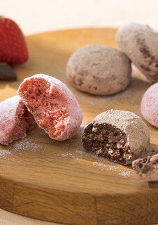 ベルギー産カカオ分65%のチョコレートとクラッシュアーモンドを生地に混ぜ込み、ココアパウダーと粉糖をまぶしました。 口の中でほろりと崩れるスペイン発祥のお菓子です。