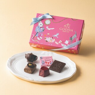 「不思議の国のアリス」の印象的なシーン「ティーパーティ」をイメージしたチョコレートを楽しめる、キュートな「アリスのティーパーティ コレクション」。 ティーパーティを彩る紅茶をイメージしたチョコレートやゴディバの100周年を記念してリニューアルされたハート形のチョコレート、シーズン限定カレなどを、物語のシンボルのトランプやティーセット、白うさぎなどを描いたパッケージに詰め合わせました。