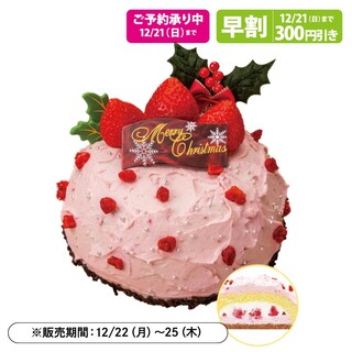 【販売期間:12/22(月)~25(木)】 【ご予約承り期間:12/21(日)まで】 ★早割:12/21(日)まで300円引き★ 甘酸っぱい苺をふんだんに使った、 ピンク色が見た目にも可愛らしいお山のケーキです。