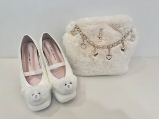 子供のころ大好きだったクマのぬいぐるみが 靴についてしまった! 大人が遊び心で履いてしまうのが楽しいデザインです♪ 愛らしいクマのお鼻にはブランドカラーのラベンダーが! コーディネートの主役にして楽しんでくださいね♪